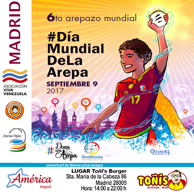 El sábado 9 de septiembre Madrid se apunta a la cita internacional del VI Día Mundial de la Arepa, que celebrará junto a decenas de ciudades de todo el mundo. El encuentro será en el Toñi’s Burger Bar, Pº Sta. María...