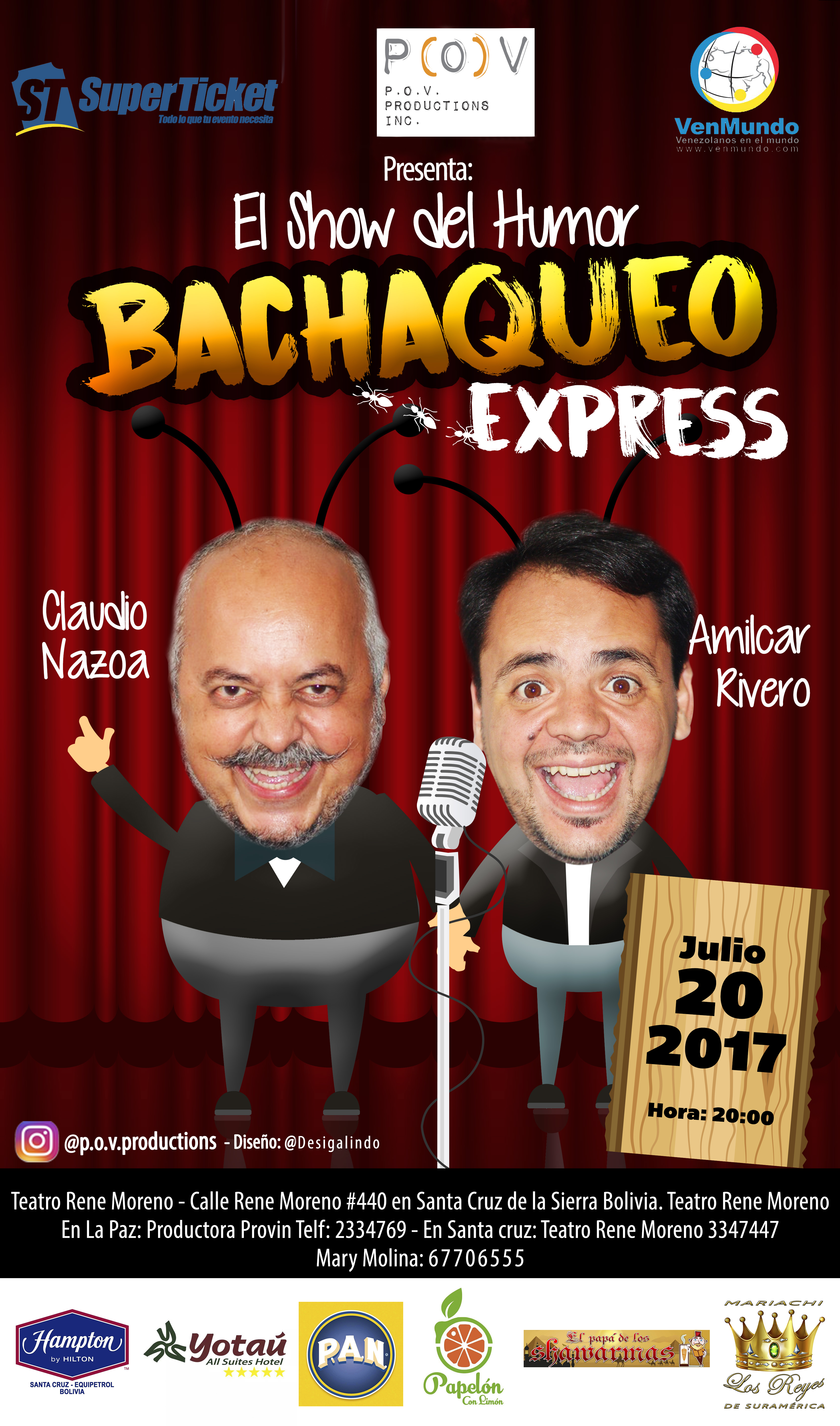 (Bolivia 01.07.17).- De la mano de VenMundo Bolivia y P.O.V Productions, los humoristas venezolanos Claudio Nazoa y Amilcar Rivero llegan por primera vez a Bolivia para presentar su show del humor Bachaqueo Express, este jueves 20 de julio a las 20:00...