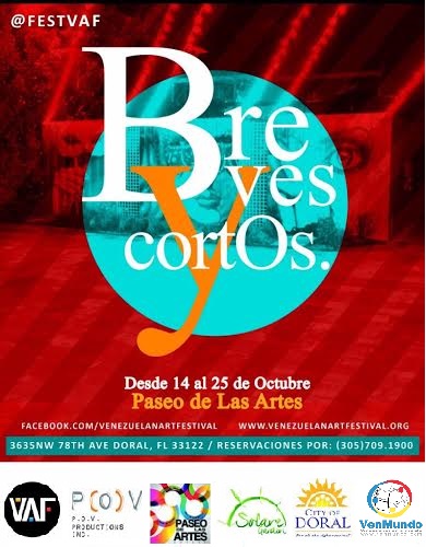 (Miami 24.09.15).- P.O.V Productions,Inc junto a Venezuelan Art Festival (VAF) presentan Breves y Cortos en el Paseo de Las Artes del 14 al 25 de octubre de 2015, este evento reunirá a gran cantidad de artistas venezolanos en un solo espacio para...