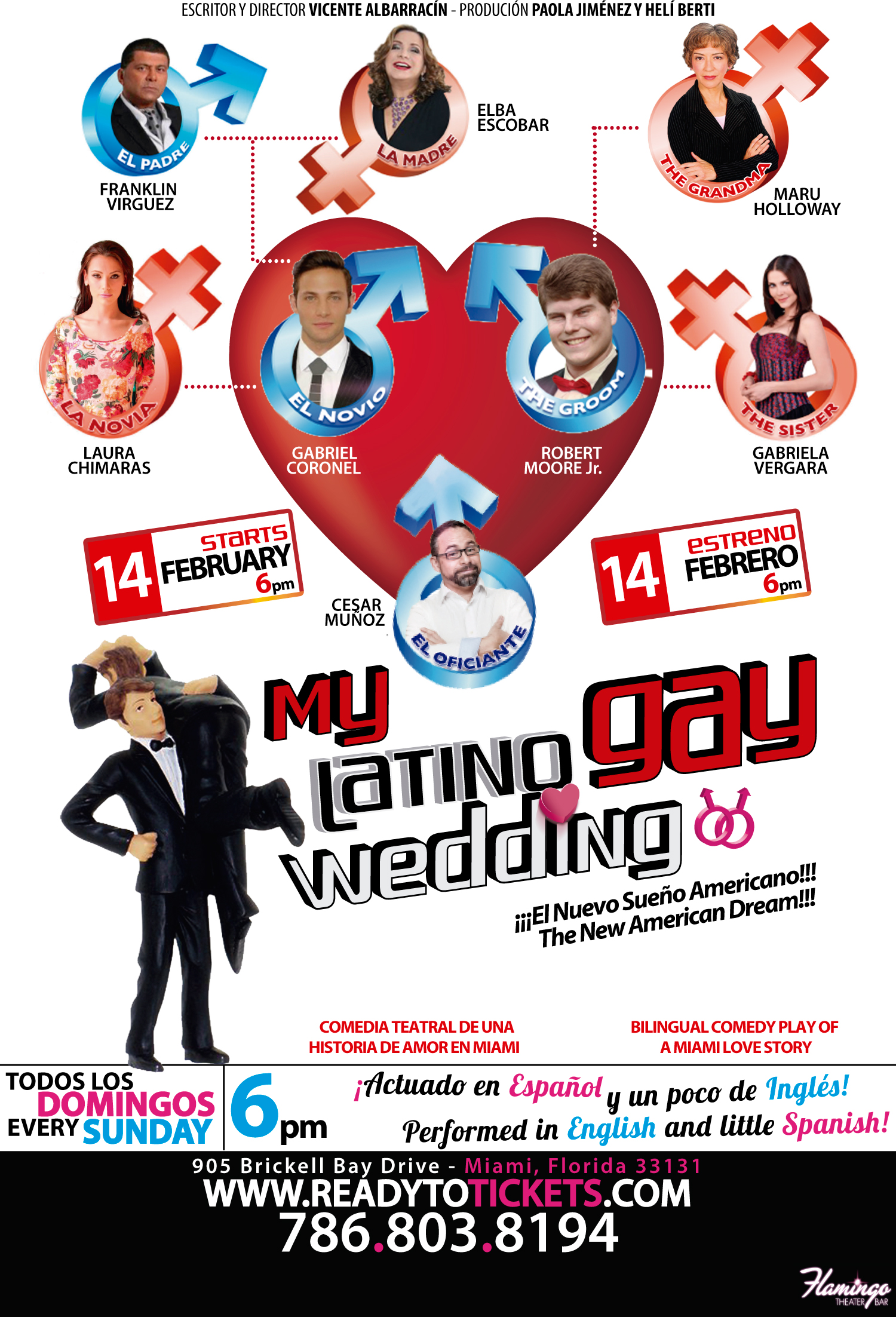 Comedia Teatral para reírse y reflexionar en Inglés y Español. My Latino Gay Wedding es una alocada comedia ambientada en Miami, que por sus características está llamada a transformarse en un puente entre las Comunidades Hispanas y Americanas en los Estados...