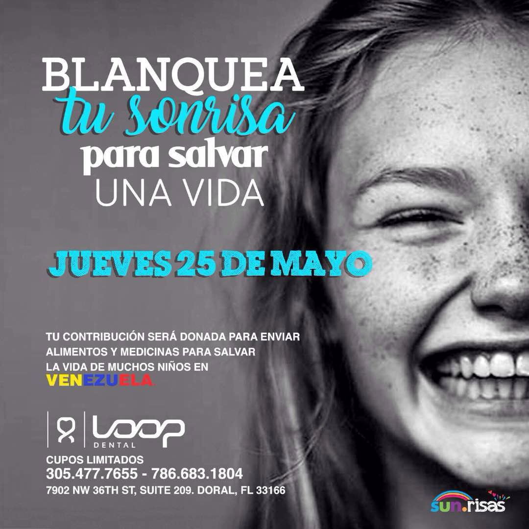 Jessica Chacín, Crisbel Henriquez, Loop Dental e Indira Leal, miembro voluntario de VenMundo, invitan a una jornada de Blanqueamiento Dental este jueves 25 de mayo para ayudar a los niños en Venezuela que tanto nos necesitan. Tendrá un costo descontado de $250 y...