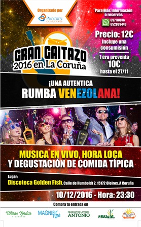 Progresi Consultores, VenMundo y Semana Mundial con #SaborAVenezuela tiene el placer de invitarles al Gran Gaitazo 2016 en Coruña realizado para los venezolanos en Galicia, hemos organizado una rumba como las que nos gustan, con sabor a nuestras costumbres. No te...
