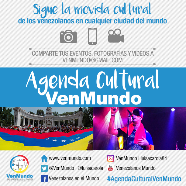 Por Luisana La Cruz / @luisacarola Acá te presentamos los eventos culturales, gastronómicos y deportivos de los venezolanos alrededor del mundo. Si deseas aparecer en este espacio comparte la información a venmundo@gmail.com. Síguenos con el HT #AgendaCulturalVenMundo en todas nuestras redes...